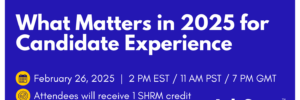JobSync Roundtable: What Matters & What Doesn't for Candidate Experience in 2025 Event Details: Date/time: February 26th at 2pm EST Topic: JobSync Roundtable: What Matters & What Doesn't In Candidate Experience in 2025 Speakers: Kevin Grossman from ERE, Elizabeth Cearley from Friedkin Group, Lynda Whittemore from Room & Board, and Bradley Cooper of SASR Workforce... Read more »