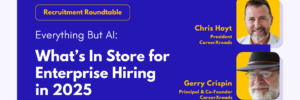 Everything But AI: What’s In Store for Enterprise Hiring in 2025 Event Details: Date/time: January 29th at 2pm EST Topic: Everything But AI: What’s In Store for Enterprise Hiring in 2025 Speakers: Gerry Crispin, Chris Hoyt In a world obsessed with AI, it’s easy to forget there’s other factors fueling the future of enterprise hiring.... Read more »