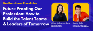 JobSync Roundtable: Future Proofing Our Profession: How to Build the Talent Teams & Leaders of Tomorrow Event Details: Date/time: April 23rd at 1pm EDT Topic:The Future of Our Profession: How to Build the Talent Teams & Leaders of Tomorrow Speakers: Allison McCutcheon Barcz, Executive Partner: Glowe Connective and Katrina Collier, Author: The Robot-Proof Recruiter and... Read more »